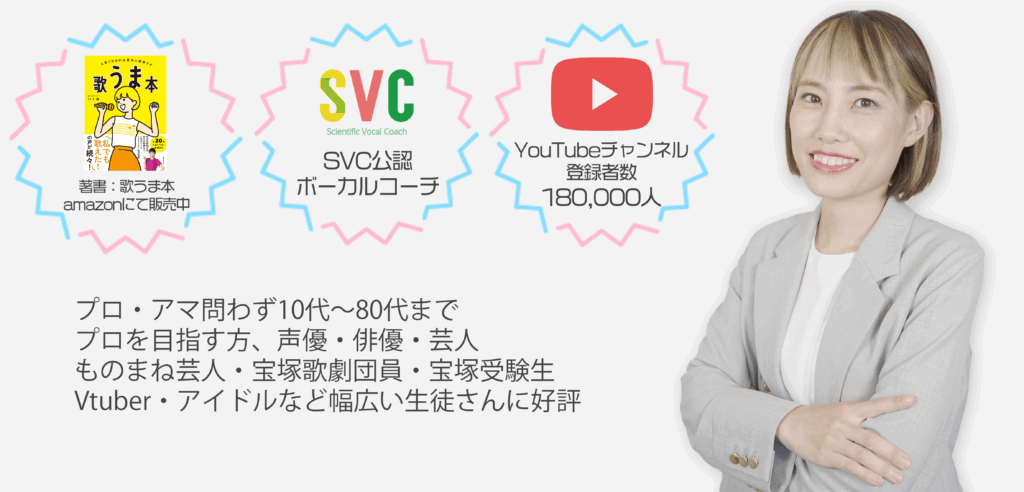 生徒さんはカラオケで上手く歌いたい方からプロを目指す方、声優・俳優・芸人・ものまね芸人・宝塚歌劇団員・宝塚受験生・Vtuber・バンドボーカル・シンガーソングライター・アイドルなど幅広い生徒さんにお通いいただいています。